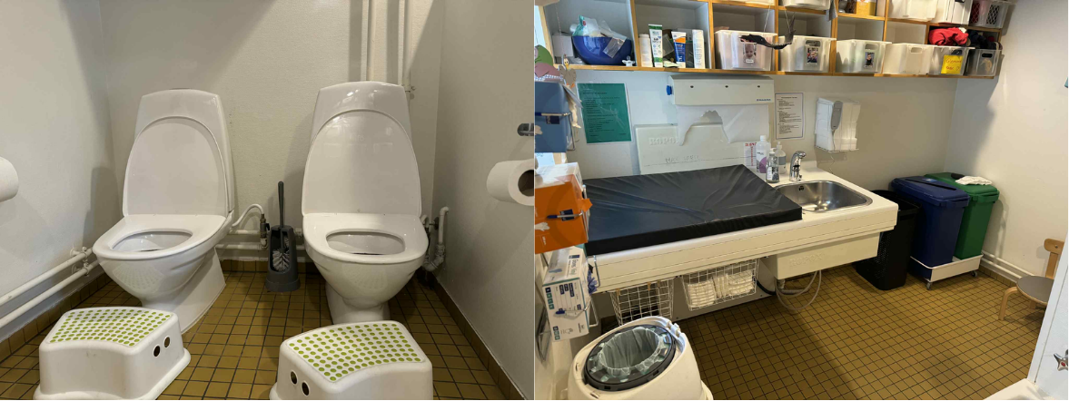Tryghed, nærvær og tillid er de vigtigste nøgleord i vores kontakt med børnene – også på badeværelset. Her arbejder vi både med selvhjulpenhed og renlighed, så børnene gradvist bliver mere selvstændige og på sigt kan blive blefri inden børnehavestart.