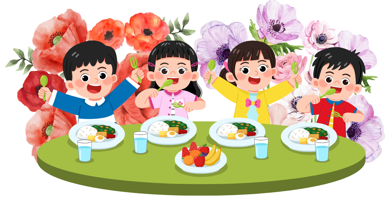 Det store måltid er en vigtig del af dagen, hvor vi skaber ro, forudsigelighed og gode muligheder for at øve selvhjulpenhed. Rutinerne er de samme på både Anemonestuen og Valmuestuen, så børnene oplever genkendelighed i hverdagen.
